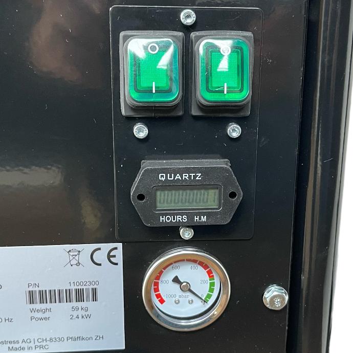 Panel sterowania zawiera niezależne wyłączniki silników, manometr podciśnienia wskazujący poziom zabrudzenia filtra oraz licznik motogodzin.