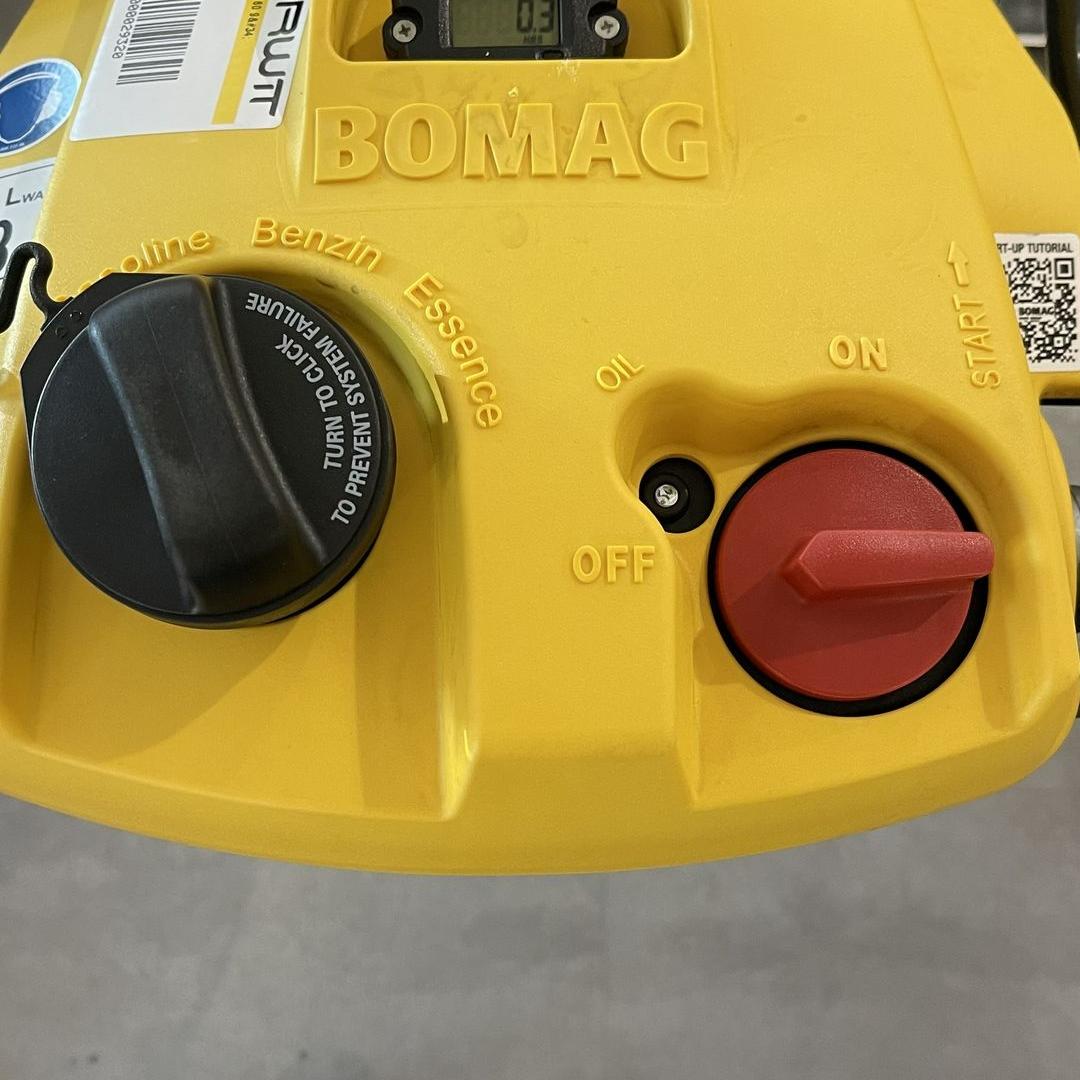 Wyłącznik i wlew paliwa w Bomag BT 60 są ergonomicznie zaprojektowane, co ułatwia tankowanie i wyłączanie maszyny, poprawiając jej obsługę i bezpieczeństwo użytkowania.