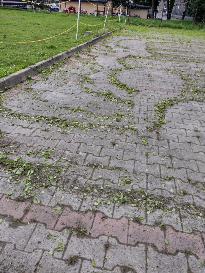 Plac kostki brukowej po użyciu maszyny ze szczotką