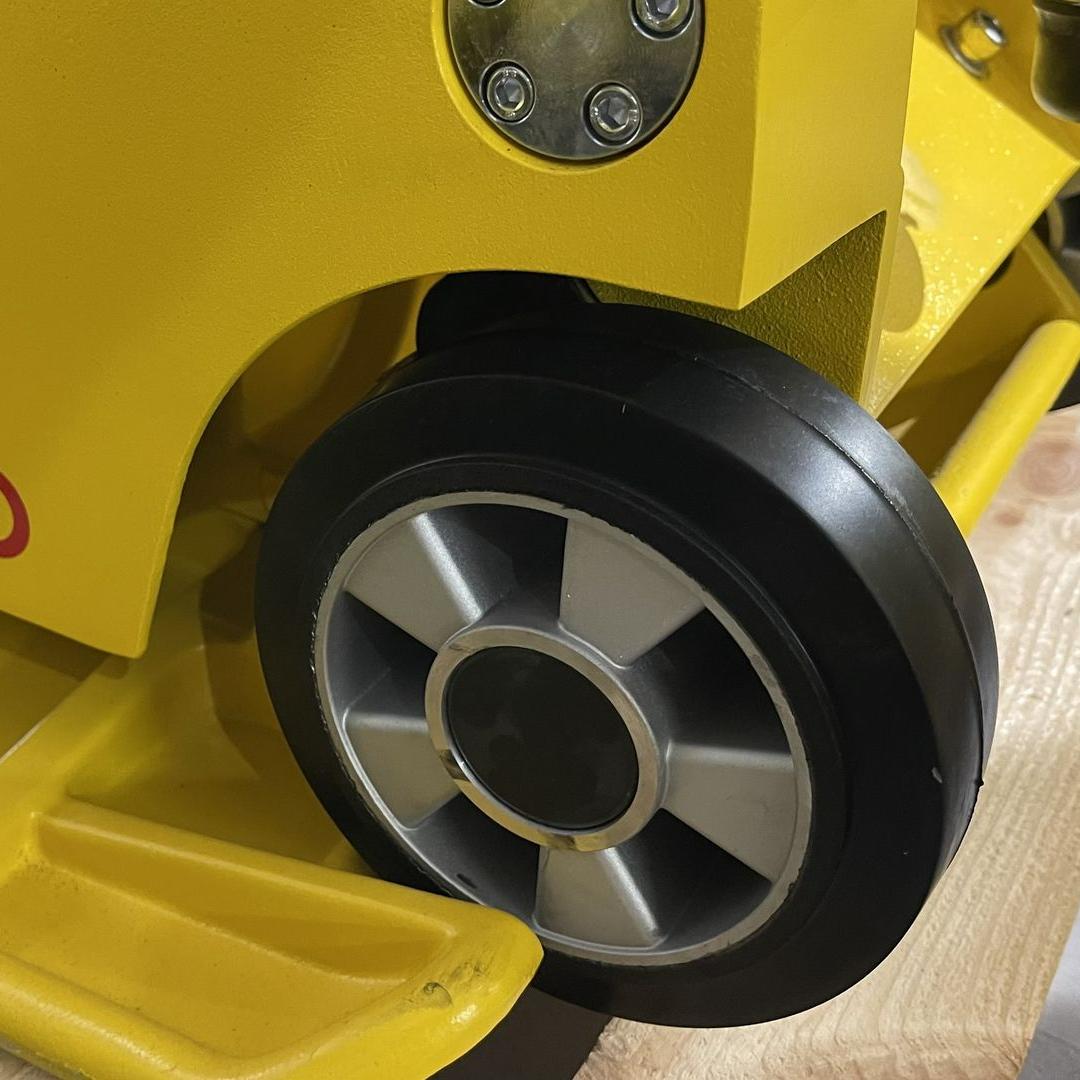 Wbudowane koła transportowe sprawiają, że przemieszczanie maszyny na budowie jest wygodne i nie wymaga dużego wysiłku, zwiększając efektywność pracy.