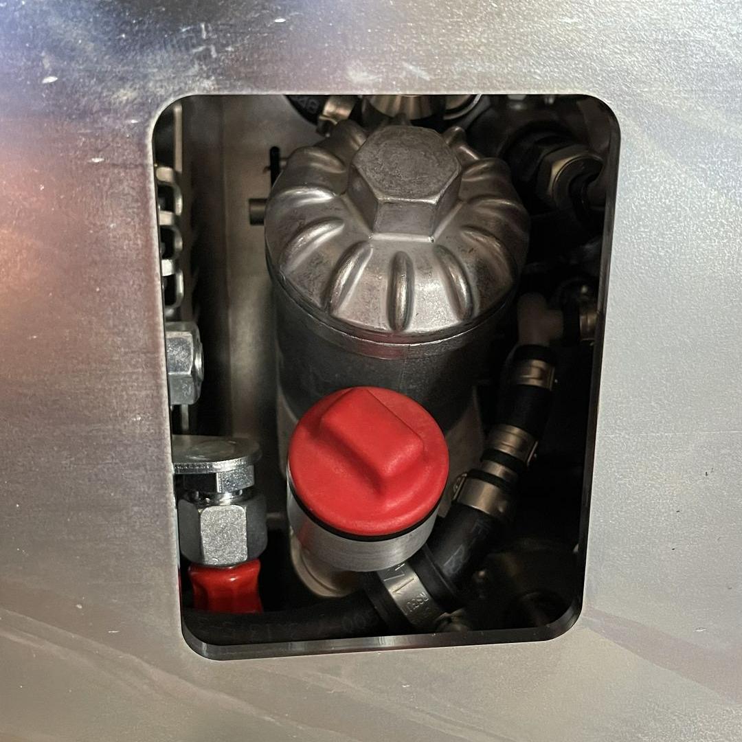 Wysoko wydajny filtr powietrza w zagęszczarce gwarantuje długą żywotność silnika, a łatwy dostęp do filtra ułatwia bieżące serwisowanie, co jest kluczowe dla zachowania wysokiej efektywności pracy maszyny.